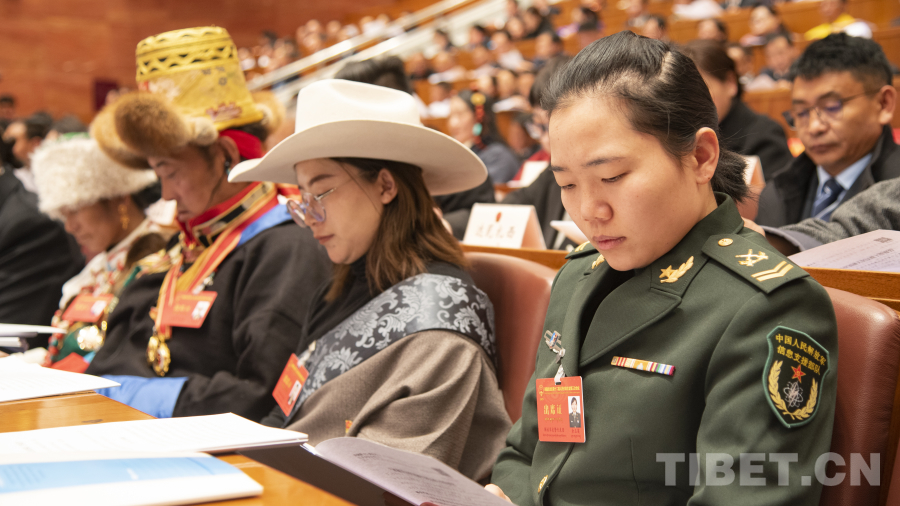 圖為西藏自治區(qū)人大代表聆聽人大常委會工作報(bào)告 攝影:趙振宇