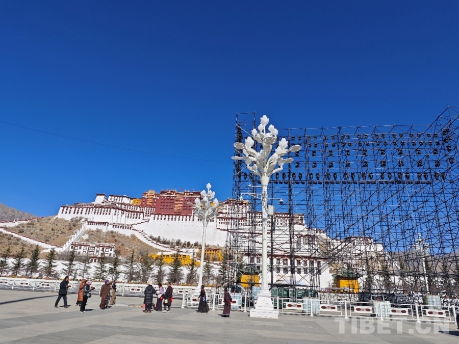 圖為布達(dá)拉宮廣場(chǎng)的春晚分會(huì)場(chǎng)布置現(xiàn)場(chǎng) 攝影:趙婧茹