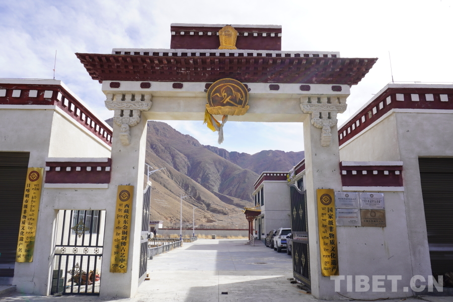 中國(guó)西藏網(wǎng)訊 冬日的早晨,西藏自治區(qū)日喀則市南木林縣艾瑪鄉(xiāng)深處不時(shí)傳出叮當(dāng)?shù)那宕啻驌袈暎@是西藏孜東金銅制佛古藝中心的學(xué)徒們正在打造新的作品。