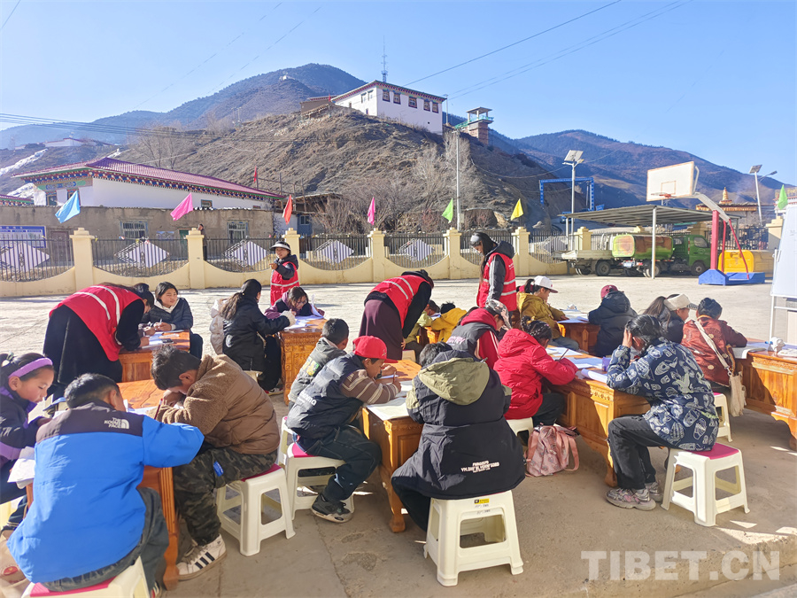 圖為西藏洛隆縣組織返鄉(xiāng)大學生對孩子們進行針對性輔導