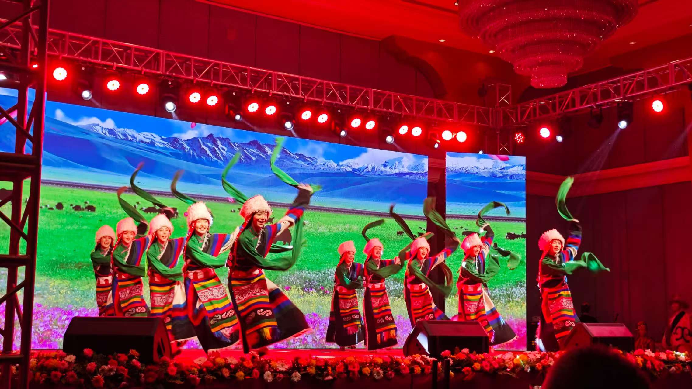 中國(guó)西藏山南市藝術(shù)團(tuán)帶來(lái)了豐富而精彩的歌舞表演。開場(chǎng)以藏戲《歡騰雅礱》點(diǎn)燃節(jié)日氣氛,獨(dú)唱《扎西德勒》《歡騰的弦子》以及尼泊爾籍藏族女歌者瓊英卓瑪演唱《花的眼睛》,贏得觀眾陣陣掌聲,《祥瑞勒布》《織夢(mèng)》《藏南鼓舞》《班戈諧欽》《弦鼓情緣》《高原舞步》等舞蹈表演體現(xiàn)了西藏各族群眾豐富的精神文化生活,展現(xiàn)了西藏日新月異的發(fā)展變化和迷人的民族風(fēng)情,在場(chǎng)藏胞紛紛為精彩演出鼓掌喝彩。
