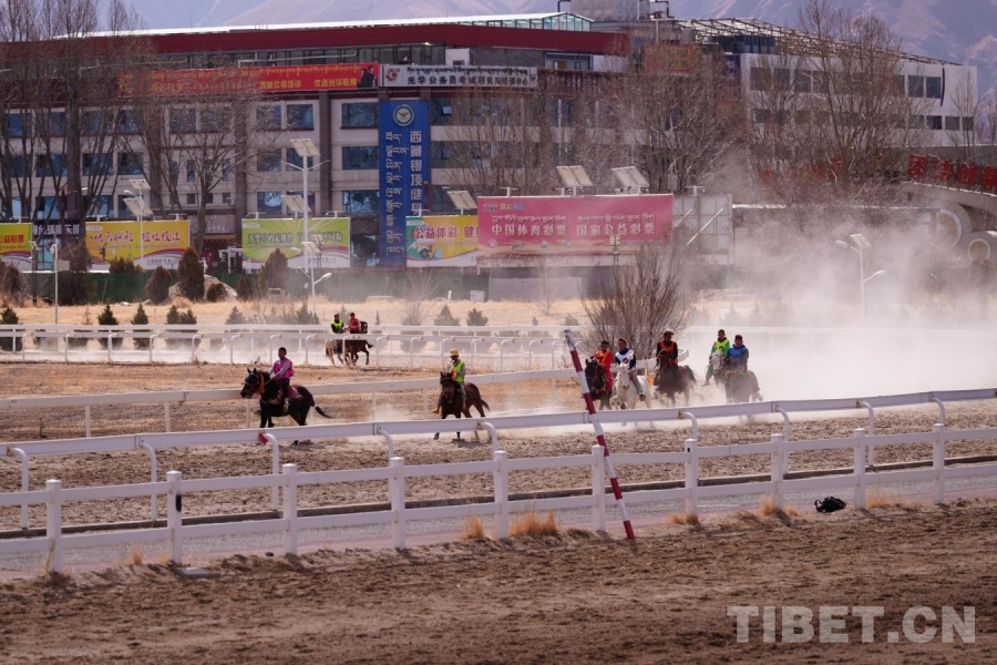 圖為運(yùn)動員進(jìn)行民族賽馬5000米比賽 攝影:德吉卓瑪