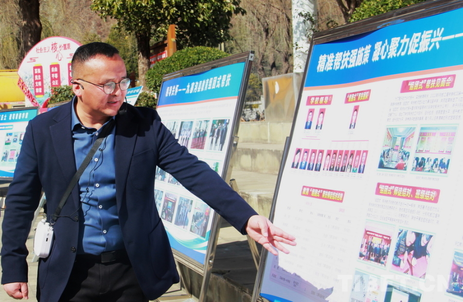 圖為來自四川省都江堰中學(xué)、現(xiàn)任九寨溝縣中學(xué)校校長(zhǎng)的李智介紹九寨溝縣組團(tuán)式教育援藏成果 攝影:劉莉