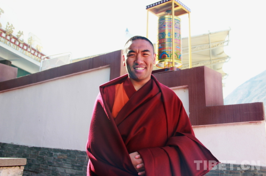 圖為四川省阿壩州九寨溝縣達(dá)吉寺的高級(jí)經(jīng)師、中國(guó)藏語系高級(jí)佛學(xué)院首批“拓然巴”高級(jí)學(xué)銜獲得者之一王杰澤然接受采訪 攝影:張家文