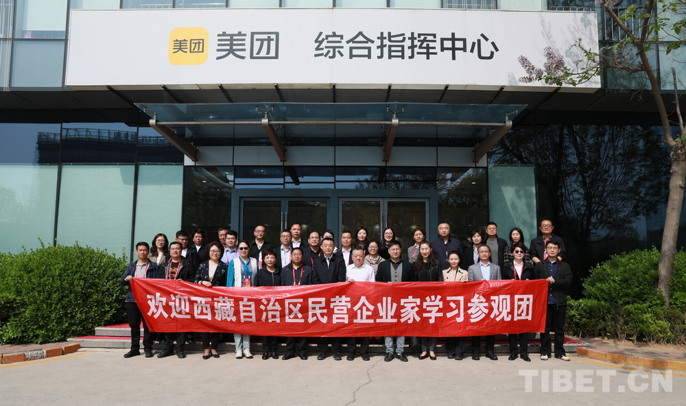 圖為西藏自治區(qū)民營企業(yè)家學習參觀團一行與美團工作人員合影 攝影:劉莉