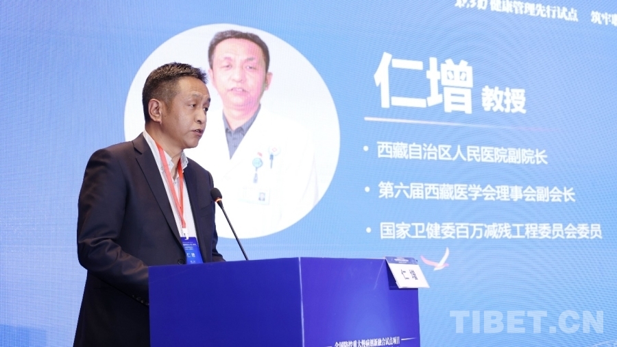 圖為西藏自治區(qū)人民醫(yī)院副院長(zhǎng)、第六屆西藏醫(yī)學(xué)會(huì)理事會(huì)副會(huì)長(zhǎng)、國(guó)家衛(wèi)健委百萬減殘工程委員會(huì)委員仁增教授發(fā)言