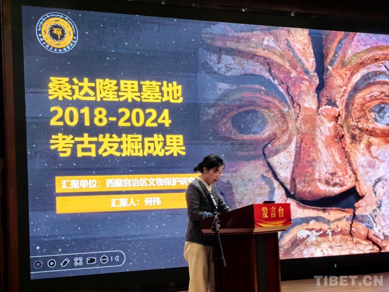 4月29日,西藏自治區(qū)文物保護(hù)研究所副研究館員何偉在“慶祝西藏自治區(qū)成立六十周年學(xué)術(shù)匯報(bào)暨2024年度業(yè)務(wù)工作公眾分享會”上介紹桑達(dá)隆果墓地考古發(fā)掘收獲。攝影:王淑