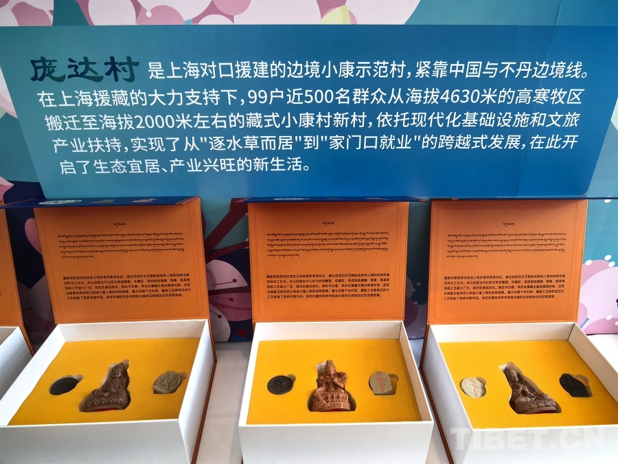 活動(dòng)設(shè)立特色文創(chuàng)產(chǎn)品展示區(qū)和非遺文化展覽,從傳統(tǒng)技藝到現(xiàn)代生產(chǎn),展現(xiàn)了亞?wèn)|在文化傳承與產(chǎn)業(yè)創(chuàng)新融合發(fā)展方面的豐碩成果。除了取材自亞?wèn)|邊境的地理文創(chuàng)產(chǎn)品石頭彩繪外,亞?wèn)|鮭魚(yú)、木耳、艾草等當(dāng)?shù)靥厣a(chǎn)品也令人眼前一亮;自治區(qū)級(jí)“西藏老字號(hào)”吉汝泥塑展現(xiàn)了非物質(zhì)文化遺產(chǎn)在當(dāng)代的創(chuàng)新傳承。在特色產(chǎn)品展銷(xiāo)臺(tái)前,人們停下腳步,認(rèn)真欣賞展品,時(shí)不時(shí)向工作人員提問(wèn)。