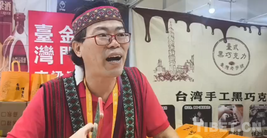 圖為5月16日,第二屆拉薩進口商品展覽會上,臺灣商人“洋蔥哥”講述自己在大陸做生意的經(jīng)歷 攝影:趙釗