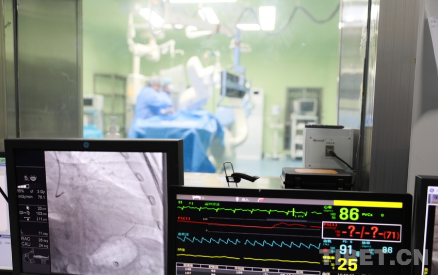 制定好手術(shù)方案后,陰赪茜馬上開(kāi)始為患者施行微創(chuàng)心臟介入手術(shù),經(jīng)過(guò)右側(cè)前臂的橈動(dòng)脈將微創(chuàng)的手術(shù)器械抵達(dá)病變的心臟血管。