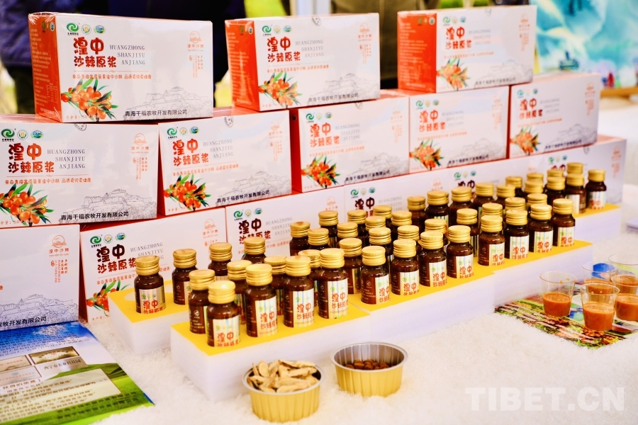 圖為當(dāng)?shù)氐奶厣r(nóng)產(chǎn)品“沙棘原漿” 攝影:龍真多吉