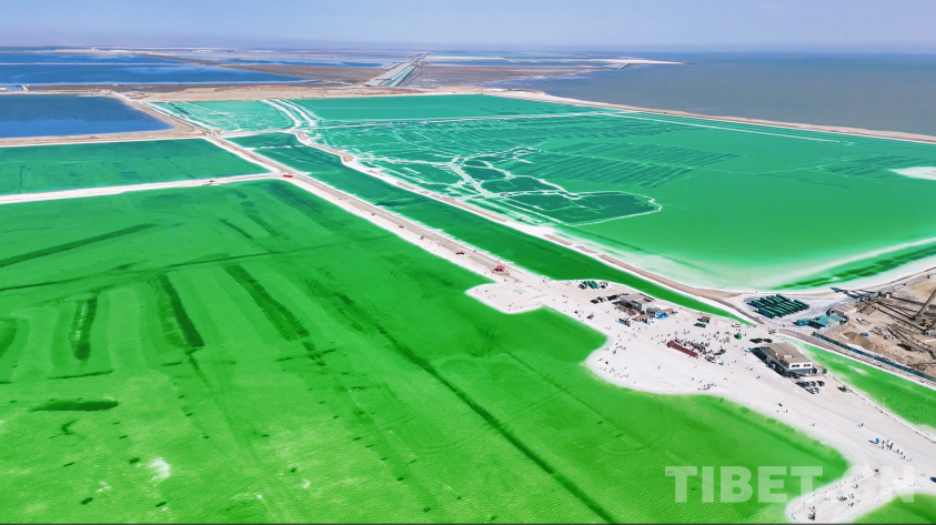 如今的察爾汗鹽湖,遠(yuǎn)處的湖面上矗立著現(xiàn)代化大型采鹽設(shè)備作業(yè),鹽砣似雪山堆疊;湖畔,湖水翠綠,鹽花雪白,美麗的風(fēng)光吸引無數(shù)游人打卡拍照,形成一幅開發(fā)與保護(hù)并重、工業(yè)與生態(tài)并存的和諧畫卷。