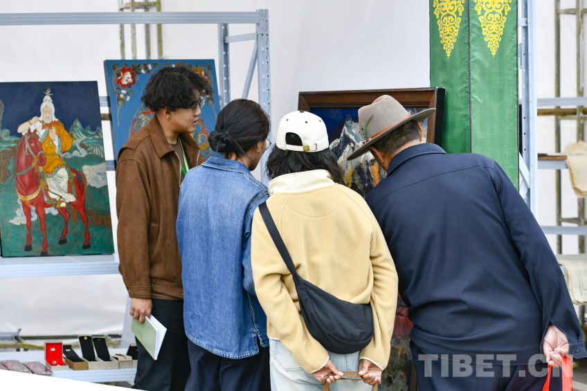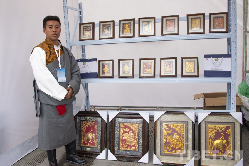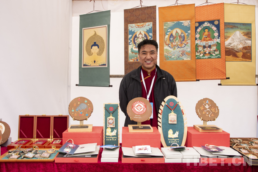 在集市的另一頭,是昌都市瑪吉阿媽唐卡畫(huà)院所展出的唐卡漆畫(huà)。“漆畫(huà)具有繪畫(huà)和工藝的雙重屬性。我們畫(huà)院主要是傳承嘎瑪嘎赤畫(huà)派的藝術(shù)作品,但近年來(lái)我們將傳統(tǒng)畫(huà)派藝術(shù)和福建漆畫(huà)進(jìn)行了有機(jī)結(jié)合,以漆畫(huà)的工藝結(jié)合唐卡的審美,創(chuàng)作出一系列作品。這些唐卡漆畫(huà)不僅在西藏很受歡迎,也有其他省份的人士向我們定制?!倍嗉嬖V記者,每一件唐卡漆畫(huà)都融合了西藏傳統(tǒng)故事、傳說(shuō)等文化內(nèi)涵,不僅是一件藝術(shù)品,更是向外界展示西藏優(yōu)秀傳統(tǒng)文化的窗口。