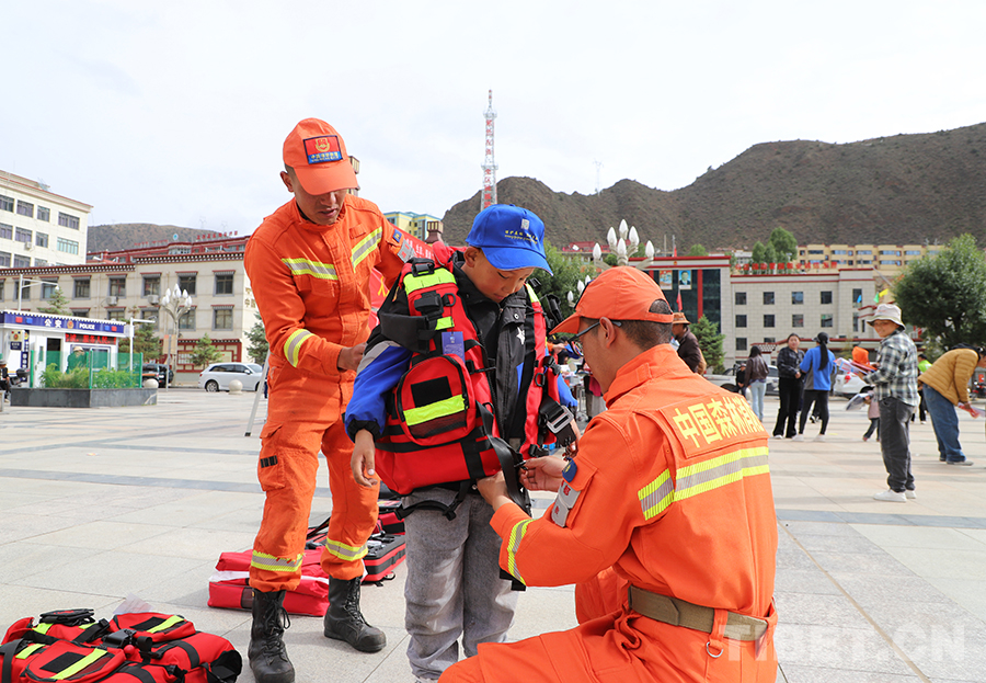 “這是我們最新配發(fā)的液壓擴(kuò)張器和液壓剪切器,主要用于打開救援通道……”在裝備展示區(qū),消防員土登旺堆正在為群眾詳細(xì)講解液壓剪切器、液壓頂撐器、生命探測(cè)儀等各類救援裝備的特點(diǎn)和使用方法,并邀請(qǐng)群眾進(jìn)行親身體驗(yàn)。