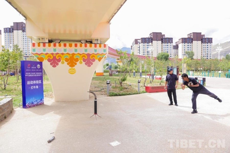 圖為西藏傳統(tǒng)體育運(yùn)動項(xiàng)目打牛角體驗(yàn)區(qū)