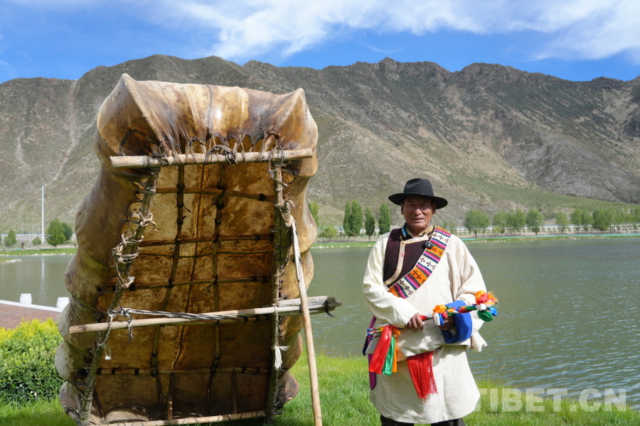 拉巴次仁的父親就曾是牛皮船舞的表演者,但是他年輕時(shí)并沒(méi)有和父親學(xué)習(xí)。2005年,國(guó)家號(hào)召傳承保護(hù)非遺項(xiàng)目,縣里和鄉(xiāng)里的領(lǐng)導(dǎo)都去找拉巴次仁做思想工作,這讓他有了動(dòng)力和信心去傳承這門藝術(shù)。當(dāng)時(shí),拉巴次仁的父親已經(jīng)去世了,他就找村里的其他老師系統(tǒng)學(xué)習(xí)牛皮船舞。