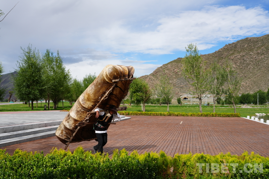 牛皮船每條重七十到八十斤,要背著這樣的重量跳舞是很不容易的。但是拉巴次仁說(shuō),如果表演的人都不享受這個(gè)過(guò)程,不熱愛(ài)這項(xiàng)藝術(shù),舞蹈也就失去了它的韻味。一次他們?nèi)ダ_演出,舞蹈隊(duì)伍要從宇拓路的一端背著牛皮船一邊表演一邊前進(jìn),直到另一端結(jié)束,近一千米的距離,隊(duì)員們都累得滿頭大汗,但是大家都咬牙堅(jiān)持了下來(lái)。