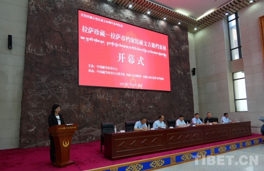 中國西藏網(wǎng)訊7月30日,“拉薩珍藏——拉薩市檔案館藏文古籍檔案展”在西藏文化博物館開幕。中國藏學研究中心黨組書記陳宗榮出席并宣布展覽開幕,中國藏學研究中心副總干事扎洛、拉薩市檔案館館長桑榮瑞分別致辭。國家民委、中國社會科學院、國家檔案局、中國第一歷史檔案館、中國國家版本館、西藏自治區(qū)檔案局、拉薩市檔案館等單位有關代表,中國藏學研究中心各部門負責同志,受邀觀眾、志愿者參加開幕式。中國藏學研究中心圖書館負責同志主持開幕式。
