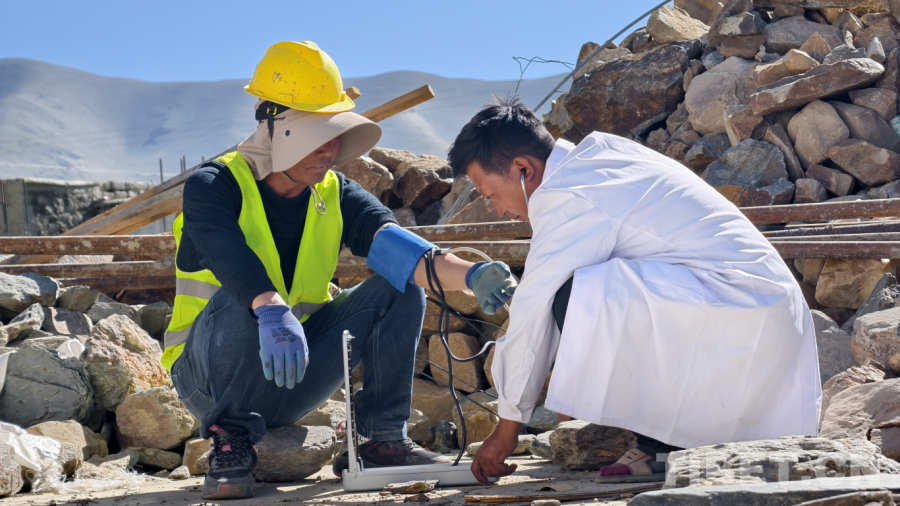 健康守護(hù)網(wǎng),筑牢重建防線。月初頂層澆筑時,施工隊(duì)員老張不慎踩中鐵釘。駐村工作隊(duì)立刻協(xié)同村醫(yī)貢嘎旦增現(xiàn)場處置,全程跟蹤治療確保傷口未感染。貢嘎旦增的足跡遍布工地,開展健康服務(wù)5輪,測量血壓47人次,發(fā)放常用藥品30余份,覆蓋200余人。鄉(xiāng)衛(wèi)生院院長為19名群眾定制慢性病方案,藏醫(yī)拉姆的“呼吸調(diào)節(jié)法”更有效舒緩了70余人的心理焦慮。