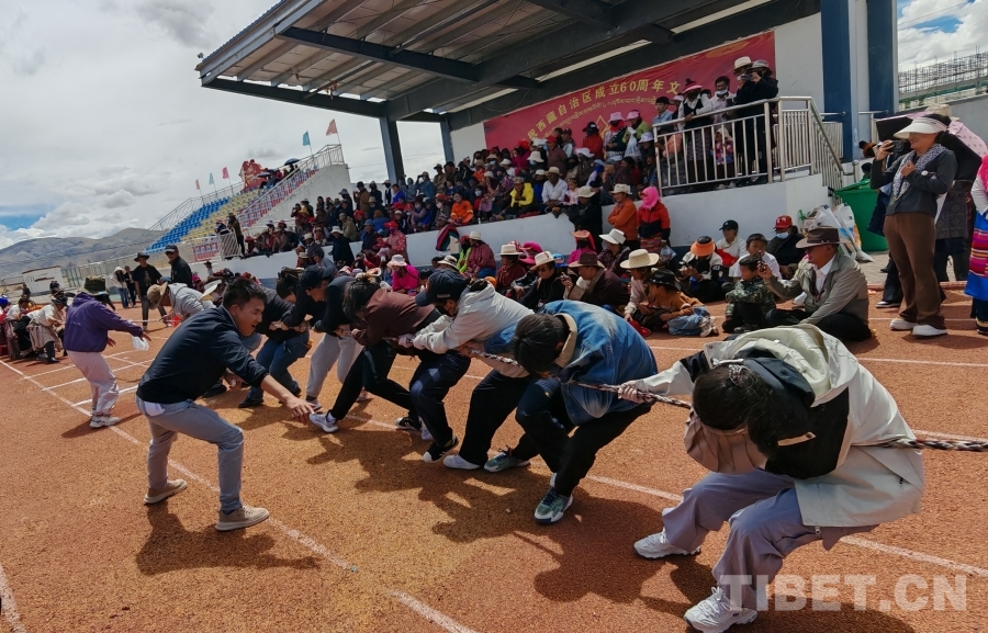 文藝演出落幕,文體活動(dòng)接棒升溫。100米、200米賽道上,選手們?nèi)珉x弦之箭,奔跑中揚(yáng)起的塵土里;拔河繩兩端,隊(duì)員們腳蹬大地、身向后仰,加油的號(hào)子聲震得地上的石子都在跳;抱沙袋、押加項(xiàng)目中,選手們咬緊牙關(guān)、全力拼搏,圍觀群眾的吶喊助威聲浪一波高過一波;穿藏服拌糌粑環(huán)節(jié),大家整理衣襟、系緊腰帶,青稞粉與礦泉水在手中交融,香氣里飄著“共話家?!钡臏厍椤宽?xiàng)活動(dòng)都是一次“心與心的對(duì)話”,讓團(tuán)結(jié)的種子在互動(dòng)中生根發(fā)芽。
