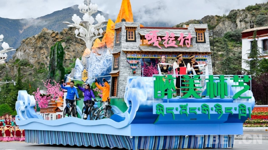 圖為慶祝大會(huì)現(xiàn)場(chǎng)的林芝市彩車(chē) 攝影:趙振宇