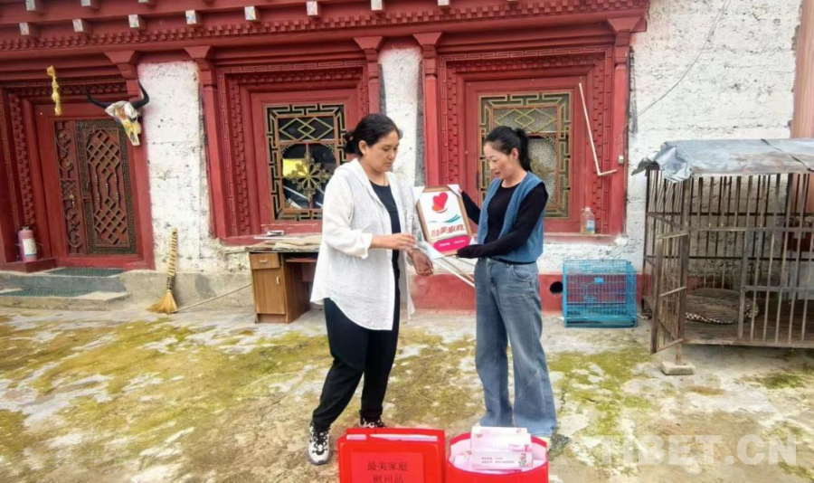 中國西藏網(wǎng)訊 近日,四川省甘孜藏族自治州得榮縣婦聯(lián)、縣文明辦工作人員來到太陽谷鎮(zhèn)松堆村,將州級“最美家庭”榮譽送到村民扎西拉姆家。這份榮譽不僅是對他們多年來在家風建設(shè)、文化傳承、公益服務(wù)中突出表現(xiàn)的肯定,更讓新時代文明實踐的“種子”落地生根。