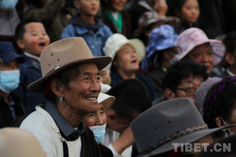 城市另一處地標羅布林卡同樣人群涌動,摩肩接踵。這里,愛戲的觀眾早早在舞臺前擺上了板凳,甚至帶來了牦牛肉、甜茶,準備享受一個愜意的假日。雪民間藏戲隊演出《朗薩雯蚌》,戲劇沖突曲折跌宕,人物演繹生動鮮活,不時引起觀眾陣陣大笑或掌聲。