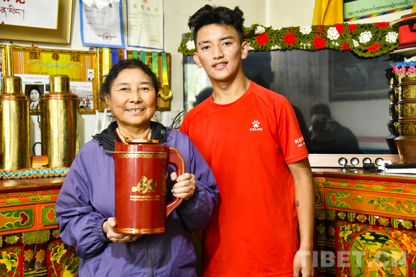 圖為羅布次仁與母親卓嘎一起喝著幸福的酥油茶 攝影:趙振宇