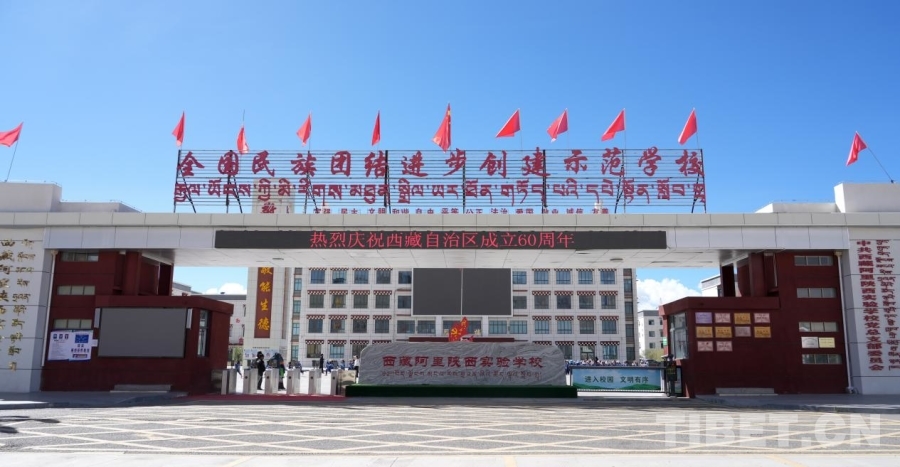 中國(guó)西藏網(wǎng)訊 平均海拔4500米的阿里,擁有這樣一座現(xiàn)代化校園——窗明幾凈的教室里書聲瑯瑯,絳紅色的塑膠跑道鋪展如新,各類多功能教室內(nèi)設(shè)施設(shè)備一應(yīng)俱全,一幢幢教學(xué)樓規(guī)整而建。西藏阿里陜西實(shí)驗(yàn)學(xué)校便如此,坐落于巍峨雄偉的燕尾山腳下,立德樹人,成風(fēng)化人。