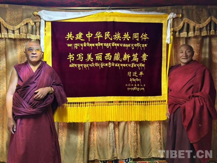 中央代表團(tuán)向孝登寺贈送了習(xí)近平總書記題詞的“共建中華民族共同體 書寫美麗西藏新篇章”賀幛。土登對此深有感觸:“‘共建中華民族共同體’意味著56個民族共同致力于中華民族的偉大夢想;‘書寫美麗西藏新篇章’是指西藏從1965至今發(fā)生巨變,我們正在此基礎(chǔ)上創(chuàng)造更美好的未來?!?nbsp;