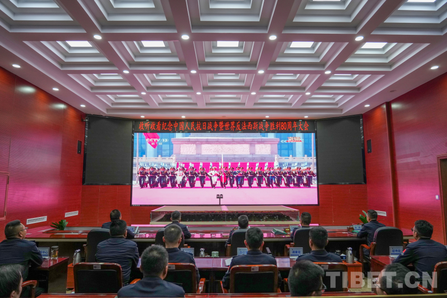 圖為日喀則邊境管理支隊(duì)機(jī)關(guān)組織民警收聽收看紀(jì)念中國人民抗日戰(zhàn)爭暨世界反法西斯戰(zhàn)爭勝利80周年大會 攝影:葉軼