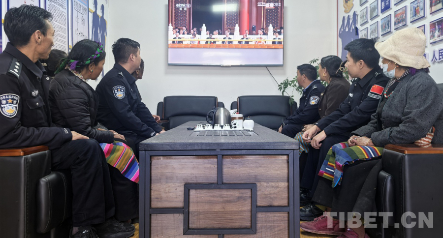 圖為日喀則邊境管理支隊(duì)吉隆邊境管理大隊(duì)吉隆邊境派出所多林橋執(zhí)勤點(diǎn)組織民警、護(hù)邊員和輔警觀看紀(jì)念中國人民抗日戰(zhàn)爭暨世界反法西斯戰(zhàn)爭勝利80周年大會 攝影:季韶龍