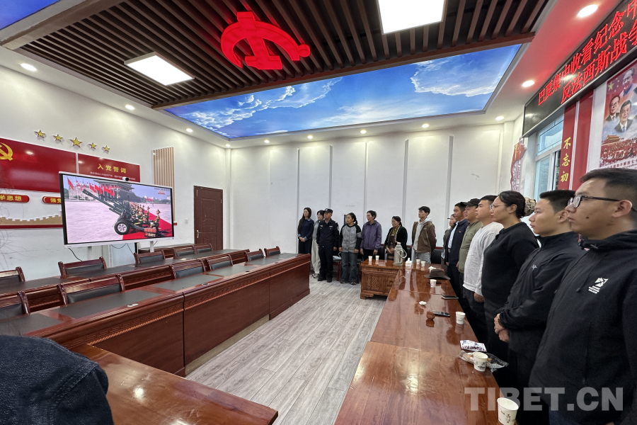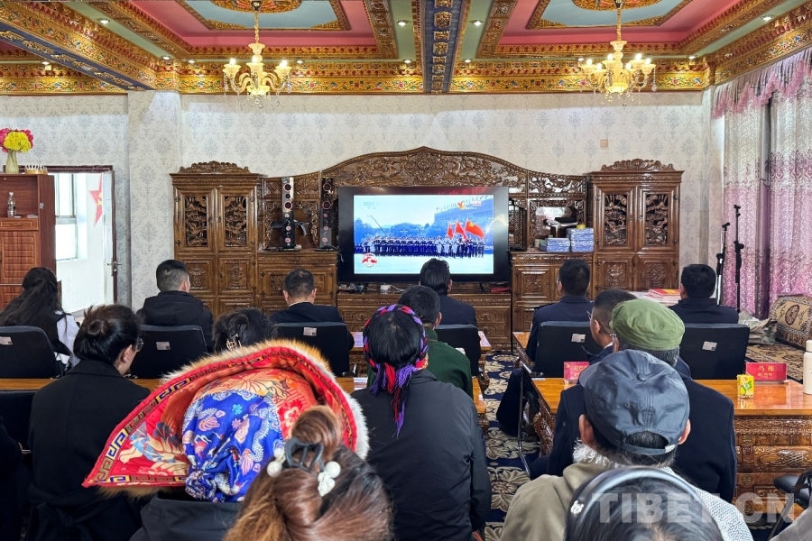 圖為日喀則邊境管理支隊(duì)仲巴邊境管理大隊(duì)帕羊邊境派出所與駐地人民政府聯(lián)合觀看紀(jì)念中國人民抗日戰(zhàn)爭暨世界反法西斯戰(zhàn)爭勝利80周年大會 攝影:次仁旺堆