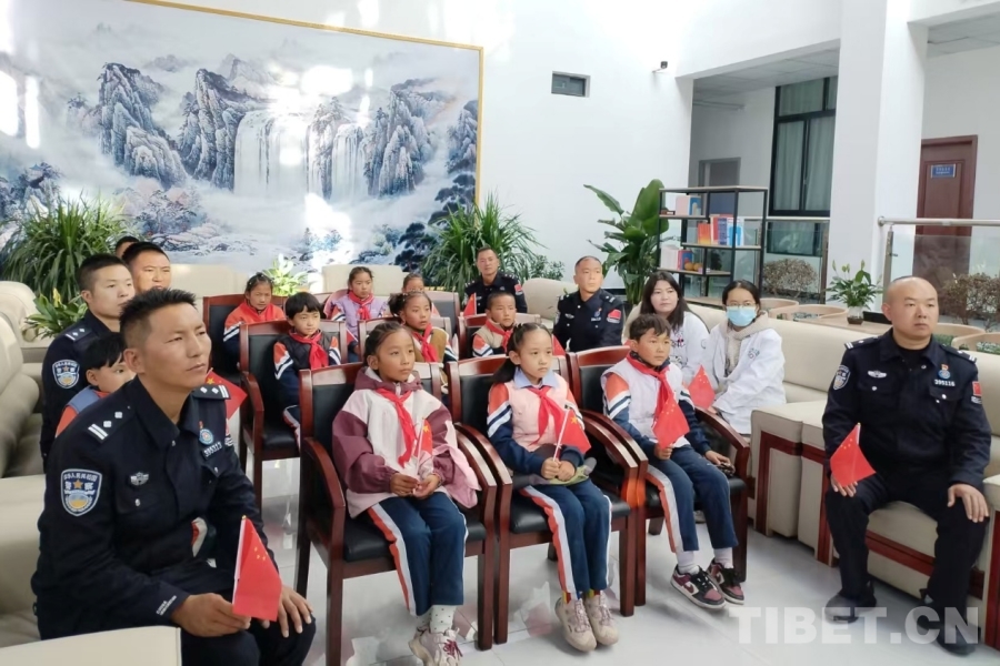 圖為日喀則邊境管理支隊(duì)康馬大隊(duì)涅如麥邊境派出所邀請學(xué)生一起觀看紀(jì)念中國人民抗日戰(zhàn)爭暨世界反法西斯戰(zhàn)爭勝利80周年大會 攝影:柳曉紅