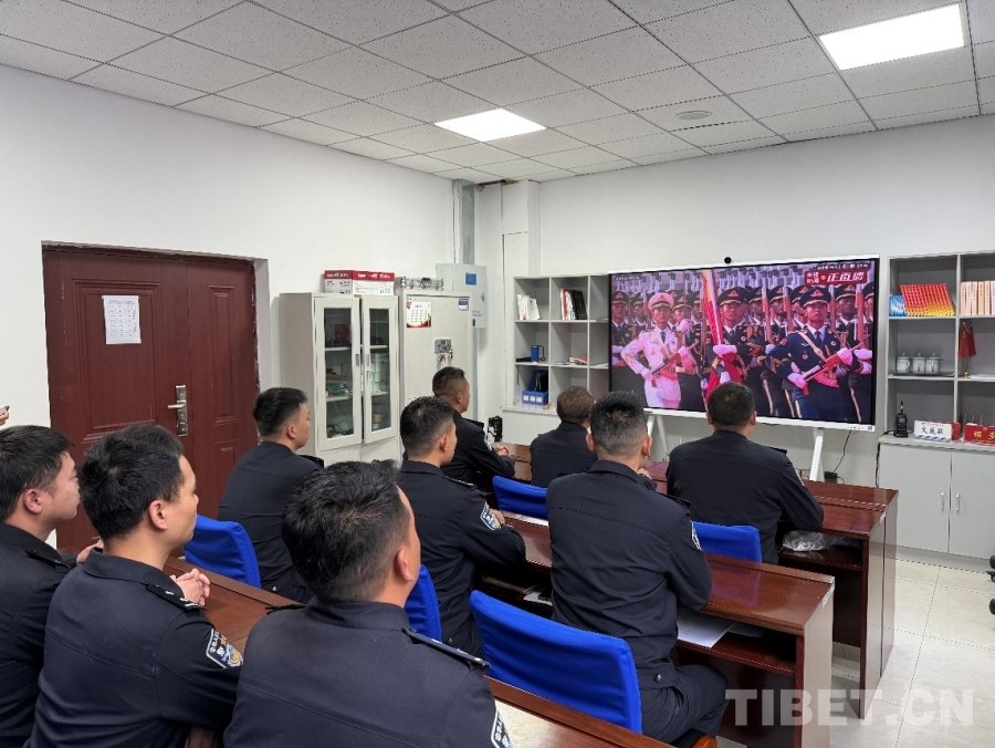 圖為日喀則邊境管理支隊(duì)亞東邊境管理大隊(duì)組織全體在位民警觀看紀(jì)念中國人民抗日戰(zhàn)爭暨世界反法西斯戰(zhàn)爭勝利80周年大會 攝影:崔伊妮