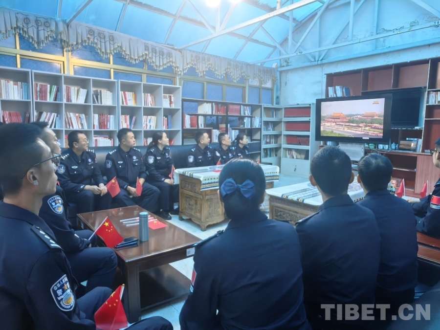 圖為日喀則邊境管理支隊(duì)康布邊境派出所組織全體民警觀看紀(jì)念中國人民抗日戰(zhàn)爭暨世界反法西斯戰(zhàn)爭勝利80周年大會 攝影:周偉