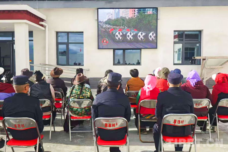 圖為日喀則邊境管理支隊(duì)仲巴邊境管理大隊(duì)里孜邊境派出所與轄區(qū)群眾共同觀看紀(jì)念中國人民抗日戰(zhàn)爭暨世界反法西斯戰(zhàn)爭勝利80周年大會 攝影:楊應(yīng)發(fā)