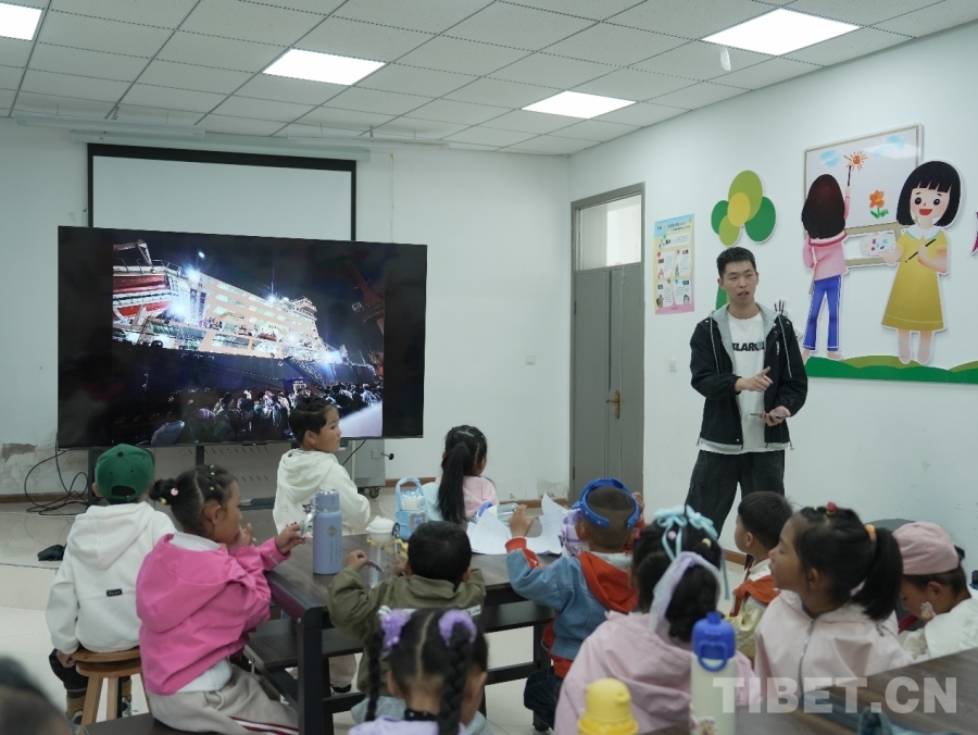這是上海海事大學(xué)西部夢想實(shí)踐團(tuán)在西藏日喀則市亞東縣開展“七彩假期”公益課堂活動(dòng)的一個(gè)畫面。2025年暑期,上海海事大學(xué)13名師生帶著航海模型、繩結(jié)教具和滿腔熱忱,用15天的“七彩假期”公益課堂,在高原孩子心里種下海洋與航海的夢想。