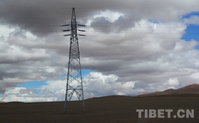 圖為快到雙湖縣城時(shí),可以看到高架電線、光伏板、基站等基礎(chǔ)設(shè)施 攝影:趙釗