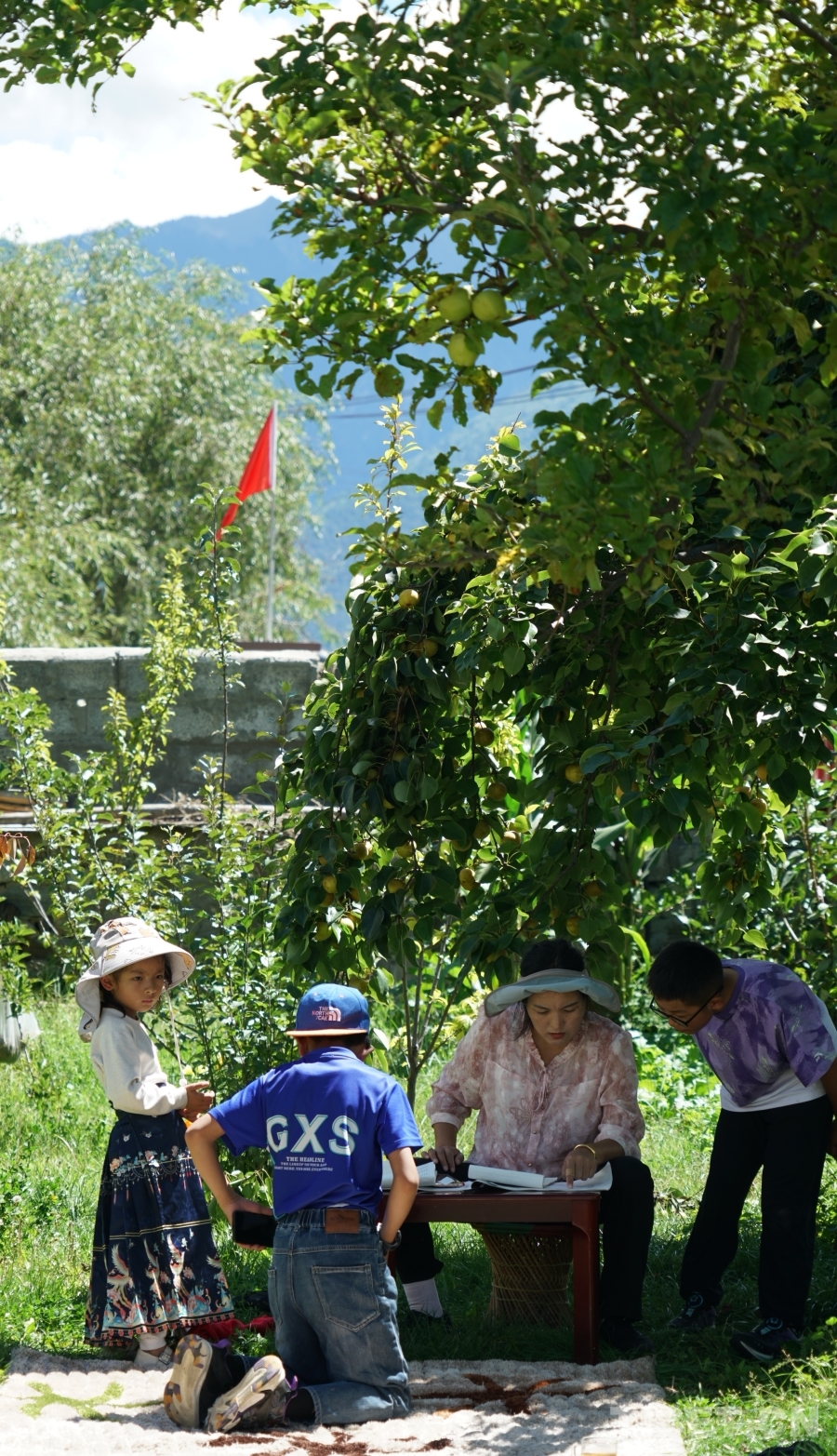 “你看,那棟帶花園的就是次仁羅布家。”順著駐村第一書記任東振手指的方向,一棟新房在陽光下熠熠生輝。院子里花團錦簇,梨花樹下,女主人尼瑪曲珍正陪孩子們寫作業(yè),陽光透過樹葉的縫隙灑下,歲月靜好。