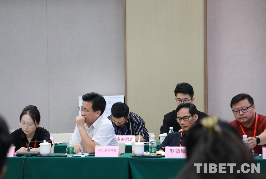 圖為馬扎·索南周扎(左二)在2025年8月北京相關(guān)座談會上聽取專家學(xué)者的交流分享 攝影:楊月云