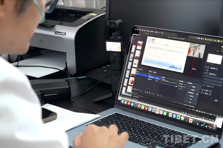 在阿里地區(qū)人民醫(yī)院的行政樓辦公室內(nèi),來(lái)自上海華山醫(yī)院神經(jīng)外科、作為第25批“博士服務(wù)團(tuán)”成員援藏的主治醫(yī)師杜倬嬰,正專(zhuān)注研究一項(xiàng)“新技術(shù)”。桌面上,一臺(tái)口袋相機(jī)運(yùn)行著,旁邊電腦屏幕上同步顯示相機(jī)所拍攝的畫(huà)面,同時(shí)呈現(xiàn)的還有一份關(guān)于高原反應(yīng)與心腦血管疾病的課程講義?!斑@是一套直播系統(tǒng),不過(guò)我現(xiàn)在還在學(xué)習(xí)怎么使用。”現(xiàn)任阿里地區(qū)人民醫(yī)院黨委委員、副院長(zhǎng)的杜倬嬰笑著展示初見(jiàn)雛形的成果。