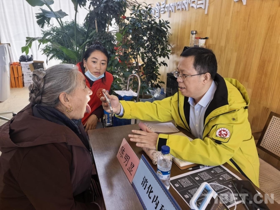 圖為“雪域高原扶陽護(hù)心”健康義診的專家為社區(qū)群眾診療