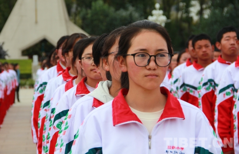 圖為師生代表在布達拉宮廣場上參加升國旗儀式 攝影:趙釗