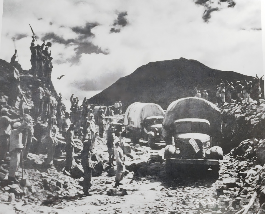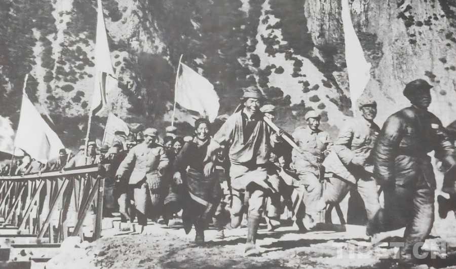 1951年10月,人民解放軍正式進(jìn)駐拉薩,隨著各項工作穩(wěn)步推進(jìn),局勢趨于穩(wěn)定。西藏工委、西藏軍區(qū)同西藏地方政府協(xié)商加快修建康藏公路的問題,于1952年在拉薩成立第一工程局(后改為第一施工局),1953年1月筑路委員會成立,下設(shè)西線筑路指揮部。進(jìn)藏部隊、地方干部與各族民工(西線筑路大軍)從拉薩出發(fā),先打通拉薩河南岸至墨竹工卡的山路,再頂著米拉山口的暴風(fēng)雪鋪筑路基,一點點將公路向著巴河的方向延伸。兩支筑路大軍隔著雪山峽谷,卻以同樣的堅韌,在高原上刻下屬于中國人的英勇無畏!