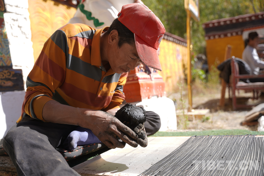 圖為吞達(dá)村村民在制作藏香
