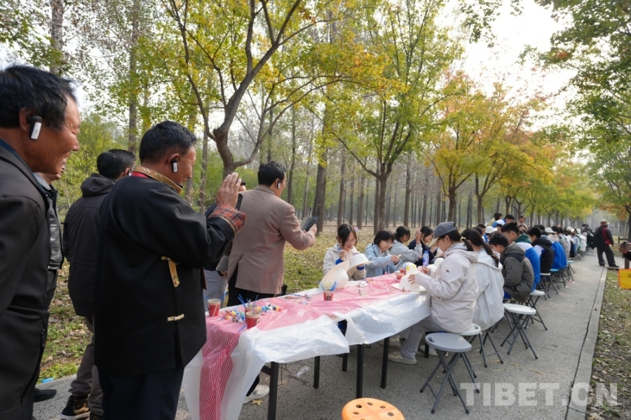 圖為西藏基層干部學習參觀團路遇進行研學的北京學生 攝影:王茜