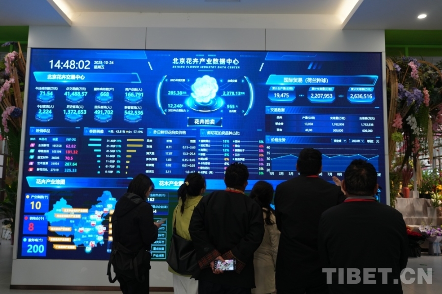 圖為西藏基層干部學習參觀團參觀花卉產業(yè)數據中心 攝影:陳玲玲