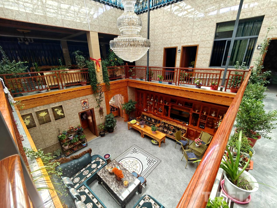 這處兩層藏式民居,二層是家人整潔舒適的臥室,點(diǎn)綴著個(gè)性化的生活照片;一層是寬敞的客廳與廚房等,各類花卉綠植為室內(nèi)增添了生機(jī)與溫馨。整個(gè)居所干凈明亮,與傳統(tǒng)印象中的農(nóng)居大不相同。
