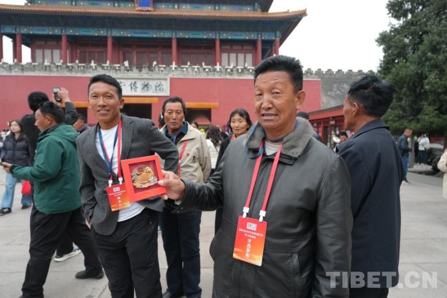 圖為西藏基層干部展示在故宮買到的文創(chuàng)產(chǎn)品 攝影:王茜